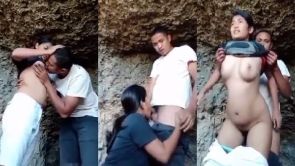 Village young lover ka outdoor jungle sex mms. Gaon k jawan ladka ladki jungle k andar ek gufa k paas sex ka maja le rahe hai. Dono hi jawan ladka ladki ek dusre k sath sex ka maja lene jungle mai aaye hai. Ladka apni sexy girlfriend ko apne aage khadi kar uski tishrt or bra ko upar utha uske bade boobs ko bahar nikaalta hai. Fir ladka apni sexy girlfriend k dono bade boobs ko dabaate hue chusne laga or ladki bhi boobs chuswaane ka maja leti hai.